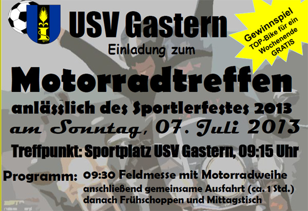 Am 7. Juli 2013 gibts in Gastern ein Motorradtreffen.